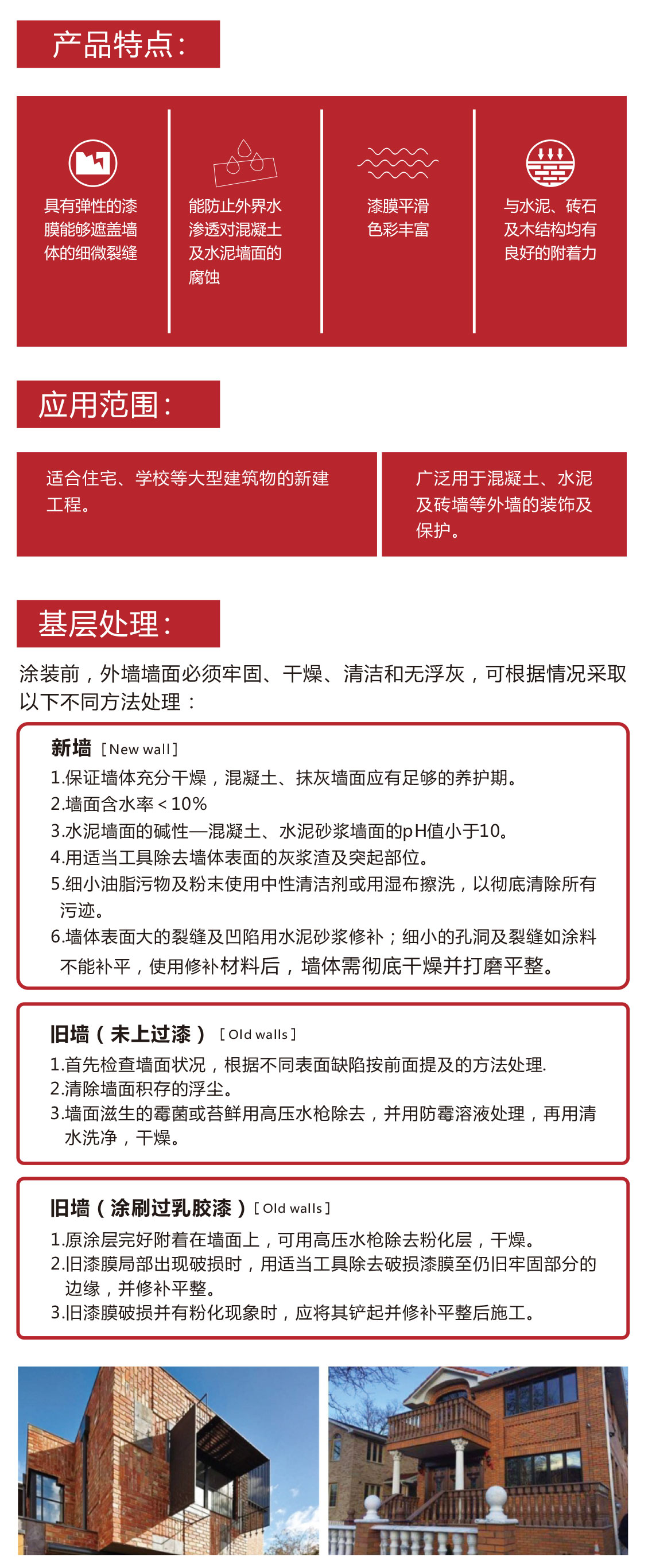 彈性外墻水漆是一款丙烯酸彈性外墻面漆,具有防水、抗裂縫及耐雨痕等功能。